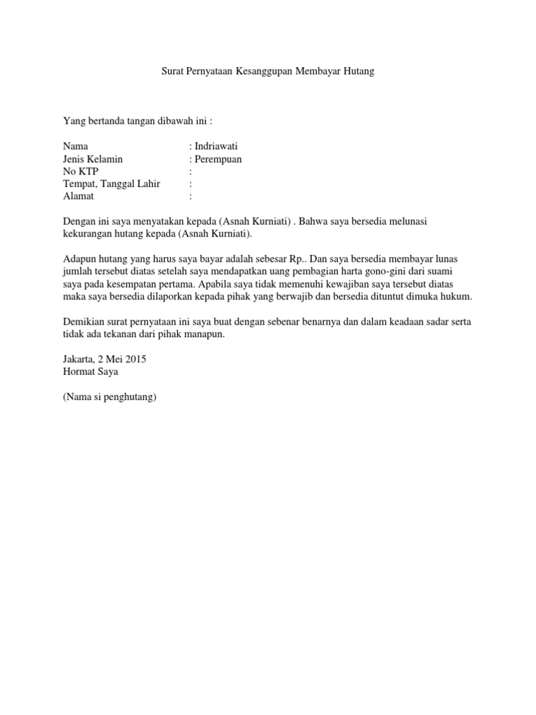 16 Contoh Surat Pernyataan Kesanggupan Membayar Dll Contoh Surat from i2.wp.com Check spelling or type a new query. Contoh surat pelunasan hutang piutang. We did not find results for: Maybe you would like to learn more about one of these?